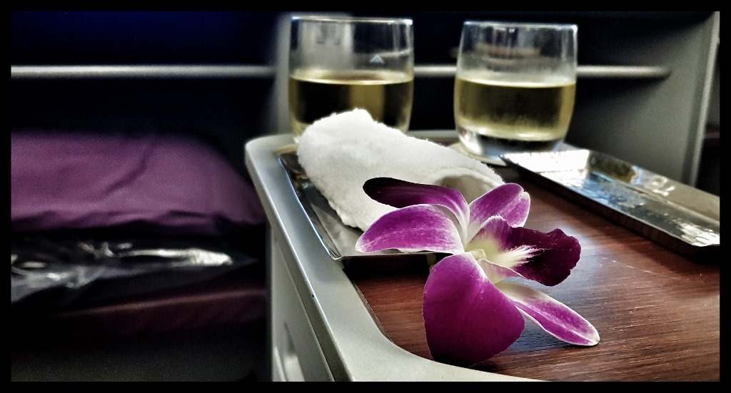 As we are waiting to board I look across at the queue of families with infants and there must be over 20 babies. We get our seats in our cabin with 18 others and I think already it’s worth it. I barely make it through dinner … all I want is sleep and the curl up on the lay flat bed till we hit Bangkok.